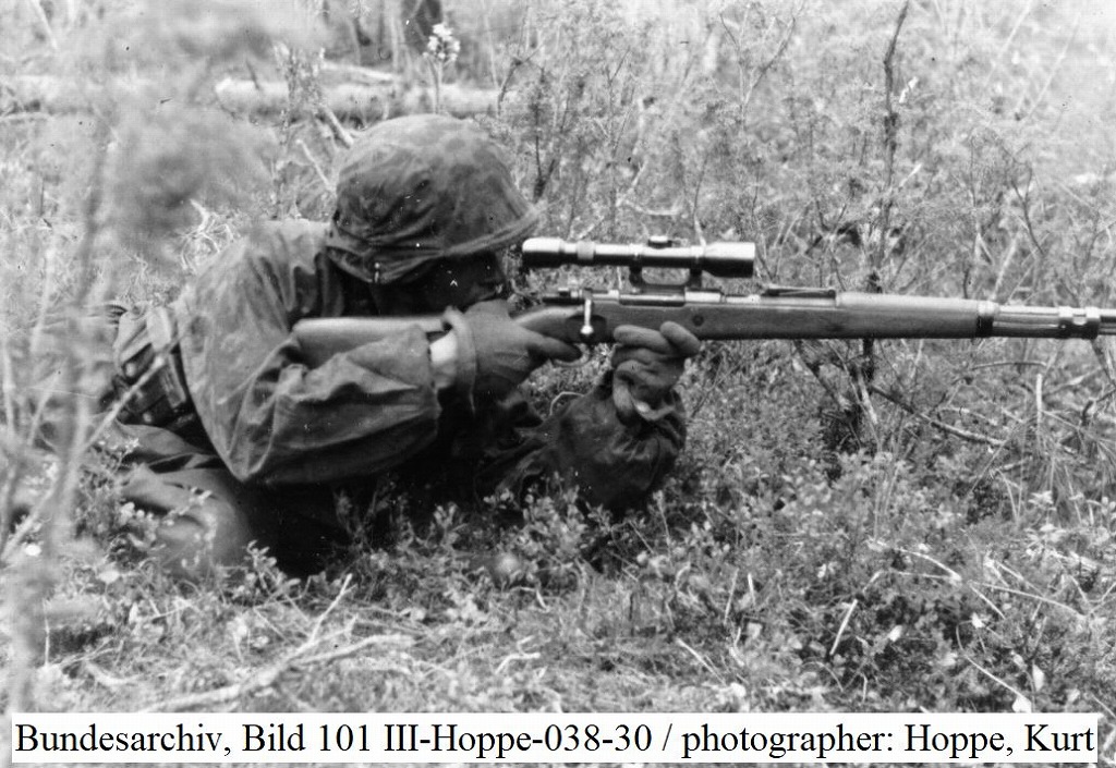 武装親衛隊狙撃兵が使用する短レールマウント付きAJACK4x90(1942年3-4月)